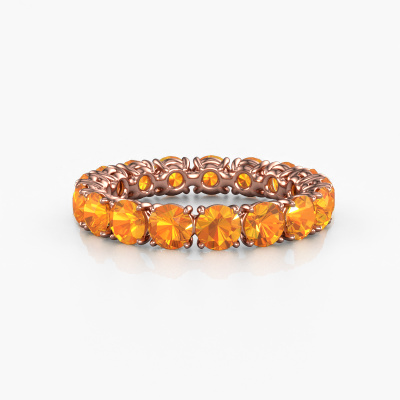 This is our Vivienne 3.7 ring. This specific type is called an eternity ring and it is set with a continuous line of identically cut gemstones. The ring is made in 14 Carat rose gold and is set with small citrin, 3.7 mm. The amazing citrin are identical in size and are set in the ring band. Our citrin are selected with great care so they are identical, which gives the best result. In order to get the best result, our artisans position all citrin by hand with the utmost care. Our Goldsmiths have one ambition, which is creating the perfect ring. That is why we love what we do. In the end you get a stunning classic rose gold stackable ring with a row of citrin which seem to have no beginning nor end. The perfect symbol of your undying love for her! How special is that!After receiving your order, our goldsmiths will start the creative process of making your Vivienne 3.7 ring. We don't keep stock. This is advantageous because these costs will not be passed on to you. Therefore, we can offer jewellery at exceptionally low prices.New jewellery designs are added to our online collection daily. Our team of passionate designers strive to create extraordinary and diverse designs. Have you seen a ring you like? Please feel free to contact us. Based on a good price/ quality ratio, we will make you an offer you can't refuse!To make it easier for you, we offer a 30 day return policy. Check our terms and conditions.