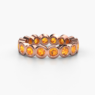 This is our Edwina 3 ring. This specific type is called an eternity ring and it is set with a continuous line of identically cut gemstones. The ring is made in 14 Carat rose gold and is set with small citrin, 3 mm. The amazing citrin are identical in size and are set in the ring band. Our citrin are selected with great care so they are identical, which gives the best result. In order to get the best result, our artisans position all citrin by hand with the utmost care. Our Goldsmiths have one ambition, which is creating the perfect ring. That is why we love what we do. In the end you get a stunning trendy rose gold stackable ring with a row of citrin which seem to have no beginning nor end. The perfect symbol of your undying love for her! How special is that!After receiving your order, our goldsmiths will passionately start the creative process of making your ring in our own studio. Because we don't have a big stockpile, these costs will not be passed on to you. Our pricing is proof of that! We offer top quality jewels at lowest price, guaranteed.Our team of talented, passionate designers add new ring designs to our online collection daily. Our objective in doing so, is to be able to offer you a wide variety of jewels. Please feel free to request a quote if you have specific wishes for your ring. We guarantee to make you an offer you can't refuse.To make it easier for you, we offer a 30 day return policy. Check our terms and conditions.