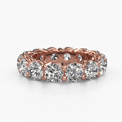 This is our Michelle full 5.0 ring. This specific type is called an eternity ring and it is set with a continuous line of identically cut gemstones. The ring is made in 14 Carat rose gold and is set with small lab-grown diamonds, 7.50 crt. The amazing lab-grown diamonds are identical in size and are set in the ring band. Our lab-grown diamonds are selected with great care so they are identical, which gives the best result. In order to get the best result, our artisans position all lab-grown diamonds by hand with the utmost care. Our Goldsmiths have one ambition, which is creating the perfect ring. That is why we love what we do. In the end you get a stunning exclusive rose gold stackable ring with a row of lab-grown diamonds which seem to have no beginning nor end. The perfect symbol of your undying love for her! How special is that!By using a combination of the latest modern techniques, combined with ancient crafting, we can make all our rings in our own studio. Each jewel is made to order. This is advantageous because we can offer you a price you won't find anywhere else.New jewellery designs are added to our online collection daily. Our team of passionate designers strive to create extraordinary and diverse designs. Have you seen a ring you like? Please feel free to contact us. Based on a good price/ quality ratio, we will make you an offer you can't refuse!To make it easier for you, we offer a 30 day return policy. Check our terms and conditions.