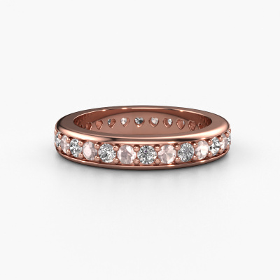 This is our Nienke ring. This specific type is called an eternity ring and it is set with a continuous line of identically cut gemstones. The ring is made in 14 Carat rose gold and is set with small morganite champagne, 2.2 mm. The amazing morganite champagne are identical in size and are set in the ring band. Our morganite champagne are selected with great care so they are identical, which gives the best result. In order to get the best result, our artisans position all morganite champagne by hand with the utmost care. Our Goldsmiths have one ambition, which is creating the perfect ring. That is why we love what we do. In the end you get a stunning exclusive rose gold stackable ring with a row of morganite champagne which seem to have no beginning nor end. The perfect symbol of your undying love for her! How special is that!