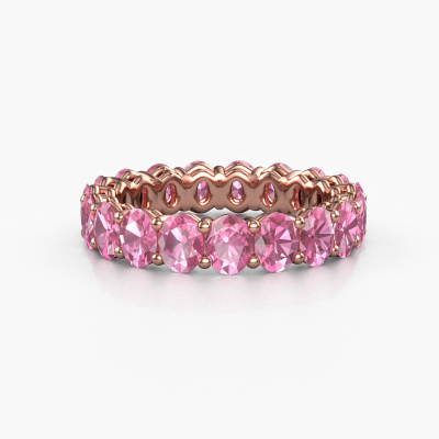 This is our Heddy OVL 3.5x4.5 ring. This specific type is called an eternity ring and it is set with a continuous line of identically cut gemstones. The ring is made in 14 Carat rose gold and is set with small pink sapphire, 4.5x3.5 mm. The amazing pink sapphire are identical in size and are set in the ring band. Our pink sapphire are selected with great care so they are identical, which gives the best result. In order to get the best result, our artisans position all pink sapphire by hand with the utmost care. Our Goldsmiths have one ambition, which is creating the perfect ring. That is why we love what we do. In the end you get a stunning fantasy rose gold stackable ring with a row of pink sapphire which seem to have no beginning nor end. The perfect symbol of your undying love for her! How special is that!By using a combination of the latest modern techniques, combined with ancient crafting, we can make all our rings in our own studio. Each jewel is made to order. This is advantageous because we can offer you a price you won't find anywhere else.Our team of talented, passionate designers add new ring designs to our online collection daily. Our objective in doing so, is to be able to offer you a wide variety of jewels. Please feel free to request a quote if you have specific wishes for your ring. We guarantee to make you an offer you can't refuse.To make it easier for you, we offer a 30 day return policy. Check our terms and conditions.