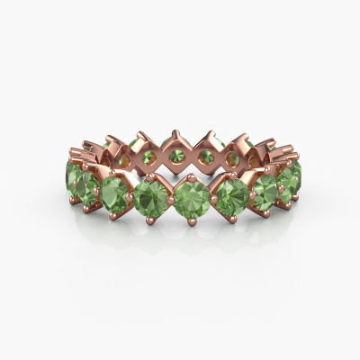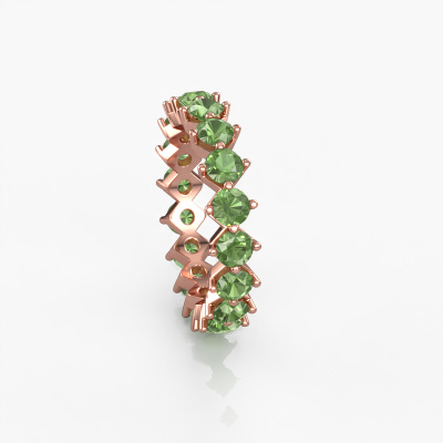 This is our Janie 3.4mm ring. This specific type is called an eternity ring and it is set with a continuous line of identically cut gemstones. The ring is made in 14 Carat rose gold and is set with small tourmaline green, 3.4 mm. The amazing tourmaline green are identical in size and are set in the ring band. Our tourmaline green are selected with great care so they are identical, which gives the best result. In order to get the best result, our artisans position all tourmaline green by hand with the utmost care. Our Goldsmiths have one ambition, which is creating the perfect ring. That is why we love what we do. In the end you get a stunning luxury rose gold stackable ring with a row of tourmaline green which seem to have no beginning nor end. The perfect symbol of your undying love for her! How special is that!After receiving your order, our goldsmiths will passionately start the creative process of making your ring in our own studio. Because we don't have a big stockpile, these costs will not be passed on to you. Our pricing is proof of that! We offer top quality jewels at lowest price, guaranteed.Our talented designers add new designs to our online collection daily. Together they create a diverse collection of the finest jewellery. If you prefer to make a ring according your own design, please feel free to request a quote. We will make you an amazing offer, based on quality and price.To make it easier for you, we offer a 30 day return policy. Check our terms and conditions.