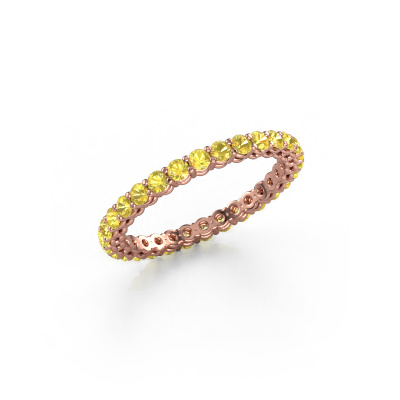 This is our Michelle full 2.0 ring. This specific type is called an eternity ring and it is set with a continuous line of identically cut gemstones. The ring is made in 14 Carat rose gold and is set with small yellow sapphire, 2 mm. The amazing yellow sapphire are identical in size and are set in the ring band. Our yellow sapphire are selected with great care so they are identical, which gives the best result. In order to get the best result, our artisans position all yellow sapphire by hand with the utmost care. Our Goldsmiths have one ambition, which is creating the perfect ring. That is why we love what we do. In the end you get a stunning classic rose gold stackable ring with a row of yellow sapphire which seem to have no beginning nor end. The perfect symbol of your undying love for her! How special is that!By using a combination of the latest modern techniques, combined with ancient crafting, we can make all our rings in our own studio. Each jewel is made to order. This is advantageous because we can offer you a price you won't find anywhere else.New jewellery designs are added to our online collection daily. Our team of passionate designers strive to create extraordinary and diverse designs. Have you seen a ring you like? Please feel free to contact us. Based on a good price/ quality ratio, we will make you an offer you can't refuse!To make it easier for you, we offer a 30 day return policy. Check our terms and conditions.