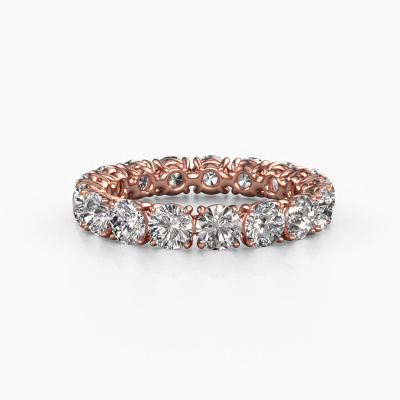 This is our Vivienne 3.7 ring. This specific type is called an eternity ring and it is set with a continuous line of identically cut gemstones. The ring is made in 14 Carat rose gold and is set with small cz-stones, 3.7 mm. The amazing cz-stones are identical in size and are set in the ring band. Our cz-stones are selected with great care so they are identical, which gives the best result. In order to get the best result, our artisans position all cz-stones by hand with the utmost care. Our Goldsmiths have one ambition, which is creating the perfect ring. That is why we love what we do. In the end you get a stunning classic rose gold stackable ring with a row of cz-stones which seem to have no beginning nor end. The perfect symbol of your undying love for her! How special is that!After receiving your order, our goldsmiths will start the creative process of making your Vivienne 3.7 ring. We don't keep stock. This is advantageous because these costs will not be passed on to you. Therefore, we can offer jewellery at exceptionally low prices.New jewellery designs are added to our online collection daily. Our team of passionate designers strive to create extraordinary and diverse designs. Have you seen a ring you like? Please feel free to contact us. Based on a good price/ quality ratio, we will make you an offer you can't refuse!To make it easier for you, we offer a 30 day return policy. Check our terms and conditions.