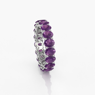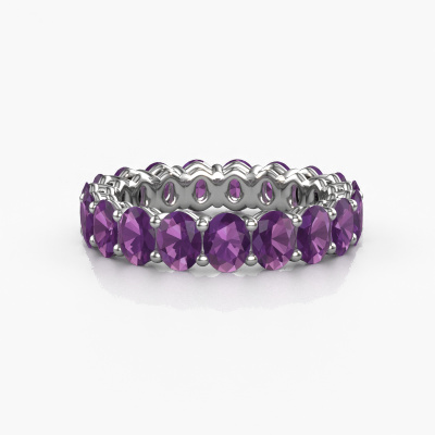 This is our Heddy OVL 3.5x4.5 ring. This specific type is called an eternity ring and it is set with a continuous line of identically cut gemstones. The ring is made in 14 Carat white gold and is set with small amethysten, 4.5x3.5 mm. The amazing amethysten are identical in size and are set in the ring band. Our amethysten are selected with great care so they are identical, which gives the best result. In order to get the best result, our artisans position all amethysten by hand with the utmost care. Our Goldsmiths have one ambition, which is creating the perfect ring. That is why we love what we do. In the end you get a stunning fantasy white gold stackable ring with a row of amethysten which seem to have no beginning nor end. The perfect symbol of your undying love for her! How special is that!By using a combination of the latest modern techniques, combined with ancient crafting, we can make all our rings in our own studio. Each jewel is made to order. This is advantageous because we can offer you a price you won't find anywhere else.Our team of talented, passionate designers add new ring designs to our online collection daily. Our objective in doing so, is to be able to offer you a wide variety of jewels. Please feel free to request a quote if you have specific wishes for your ring. We guarantee to make you an offer you can't refuse.To make it easier for you, we offer a 30 day return policy. Check our terms and conditions.