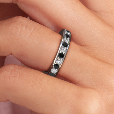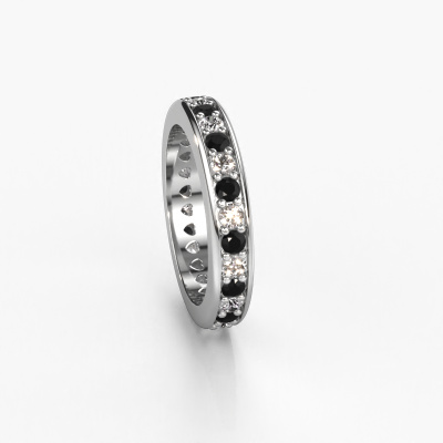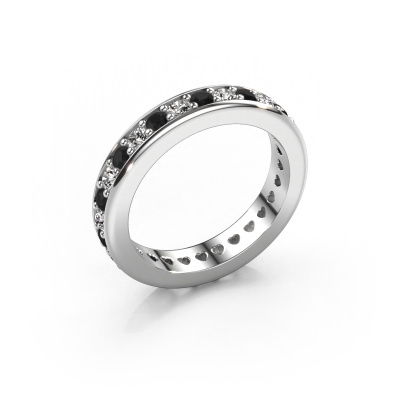 This is our Nienke ring. This specific type is called an eternity ring and it is set with a continuous line of identically cut gemstones. The ring is made in 14 Carat white gold and is set with small black diamonds, 1.386 crt. The amazing black diamonds are identical in size and are set in the ring band. Our black diamonds are selected with great care so they are identical, which gives the best result. In order to get the best result, our artisans position all black diamonds by hand with the utmost care. Our Goldsmiths have one ambition, which is creating the perfect ring. That is why we love what we do. In the end you get a stunning modern white gold stackable ring with a row of black diamonds which seem to have no beginning nor end. The perfect symbol of your undying love for her! How special is that!After receiving your order, our goldsmiths will start the creative process of making your Nienke ring. We don't keep stock. This is advantageous because these costs will not be passed on to you. Therefore, we can offer jewellery at exceptionally low prices.Our team of talented, passionate designers add new ring designs to our online collection daily. Our objective in doing so, is to be able to offer you a wide variety of jewels. Please feel free to request a quote if you have specific wishes for your ring. We guarantee to make you an offer you can't refuse.To make it easier for you, we offer a 30 day return policy. Check our terms and conditions.