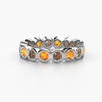 This is our Edwina 3 ring. This specific type is called an eternity ring and it is set with a continuous line of identically cut gemstones. The ring is made in 14 Carat white gold and is set with small brown diamonds, 0.80 crt. The amazing brown diamonds are identical in size and are set in the ring band. Our brown diamonds are selected with great care so they are identical, which gives the best result. In order to get the best result, our artisans position all brown diamonds by hand with the utmost care. Our Goldsmiths have one ambition, which is creating the perfect ring. That is why we love what we do. In the end you get a stunning trendy white gold stackable ring with a row of brown diamonds which seem to have no beginning nor end. The perfect symbol of your undying love for her! How special is that!After receiving your order, our goldsmiths will passionately start the creative process of making your ring in our own studio. Because we don't have a big stockpile, these costs will not be passed on to you. Our pricing is proof of that! We offer top quality jewels at lowest price, guaranteed.Our team of talented, passionate designers add new ring designs to our online collection daily. Our objective in doing so, is to be able to offer you a wide variety of jewels. Please feel free to request a quote if you have specific wishes for your ring. We guarantee to make you an offer you can't refuse.To make it easier for you, we offer a 30 day return policy. Check our terms and conditions.