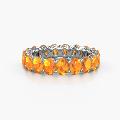 This is our Heddy OVL 3.5x4.5 ring. This specific type is called an eternity ring and it is set with a continuous line of identically cut gemstones. The ring is made in 14 Carat white gold and is set with small citrin, 4.5x3.5 mm. The amazing citrin are identical in size and are set in the ring band. Our citrin are selected with great care so they are identical, which gives the best result. In order to get the best result, our artisans position all citrin by hand with the utmost care. Our Goldsmiths have one ambition, which is creating the perfect ring. That is why we love what we do. In the end you get a stunning fantasy white gold stackable ring with a row of citrin which seem to have no beginning nor end. The perfect symbol of your undying love for her! How special is that!By using a combination of the latest modern techniques, combined with ancient crafting, we can make all our rings in our own studio. Each jewel is made to order. This is advantageous because we can offer you a price you won't find anywhere else.Our team of talented, passionate designers add new ring designs to our online collection daily. Our objective in doing so, is to be able to offer you a wide variety of jewels. Please feel free to request a quote if you have specific wishes for your ring. We guarantee to make you an offer you can't refuse.To make it easier for you, we offer a 30 day return policy. Check our terms and conditions.