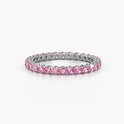This is our Michelle full 2.0 ring. This specific type is called an eternity ring and it is set with a continuous line of identically cut gemstones. The ring is made in 14 Carat white gold and is set with small pink sapphire, 2 mm. The amazing pink sapphire are identical in size and are set in the ring band. Our pink sapphire are selected with great care so they are identical, which gives the best result. In order to get the best result, our artisans position all pink sapphire by hand with the utmost care. Our Goldsmiths have one ambition, which is creating the perfect ring. That is why we love what we do. In the end you get a stunning classic white gold stackable ring with a row of pink sapphire which seem to have no beginning nor end. The perfect symbol of your undying love for her! How special is that!By using a combination of the latest modern techniques, combined with ancient crafting, we can make all our rings in our own studio. Each jewel is made to order. This is advantageous because we can offer you a price you won't find anywhere else.New jewellery designs are added to our online collection daily. Our team of passionate designers strive to create extraordinary and diverse designs. Have you seen a ring you like? Please feel free to contact us. Based on a good price/ quality ratio, we will make you an offer you can't refuse!To make it easier for you, we offer a 30 day return policy. Check our terms and conditions.