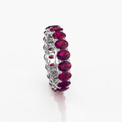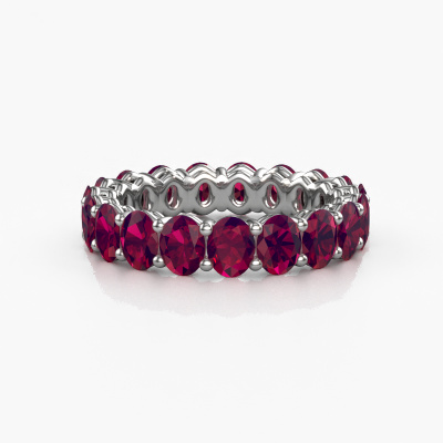 This is our Heddy OVL 3.5x4.5 ring. This specific type is called an eternity ring and it is set with a continuous line of identically cut gemstones. The ring is made in 14 Carat white gold and is set with small rhodolite, 4.5x3.5 mm. The amazing rhodolite are identical in size and are set in the ring band. Our rhodolite are selected with great care so they are identical, which gives the best result. In order to get the best result, our artisans position all rhodolite by hand with the utmost care. Our Goldsmiths have one ambition, which is creating the perfect ring. That is why we love what we do. In the end you get a stunning fantasy white gold stackable ring with a row of rhodolite which seem to have no beginning nor end. The perfect symbol of your undying love for her! How special is that!By using a combination of the latest modern techniques, combined with ancient crafting, we can make all our rings in our own studio. Each jewel is made to order. This is advantageous because we can offer you a price you won't find anywhere else.Our team of talented, passionate designers add new ring designs to our online collection daily. Our objective in doing so, is to be able to offer you a wide variety of jewels. Please feel free to request a quote if you have specific wishes for your ring. We guarantee to make you an offer you can't refuse.To make it easier for you, we offer a 30 day return policy. Check our terms and conditions.