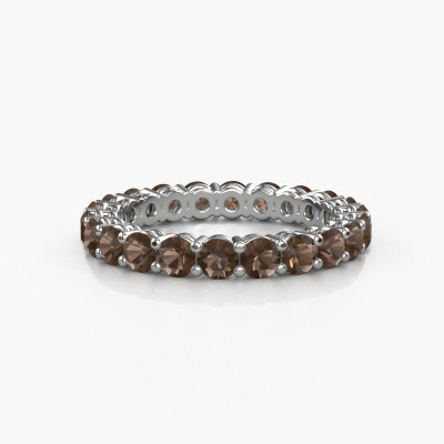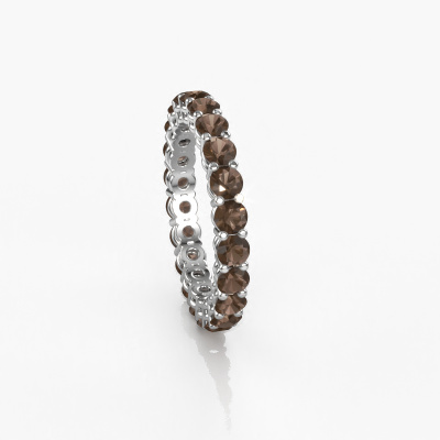 This is our Michelle full 3.0 ring. This specific type is called an eternity ring and it is set with a continuous line of identically cut gemstones. The ring is made in 14 Carat white gold and is set with small smokey quartz, 3 mm. The amazing smokey quartz are identical in size and are set in the ring band. Our smokey quartz are selected with great care so they are identical, which gives the best result. In order to get the best result, our artisans position all smokey quartz by hand with the utmost care. Our Goldsmiths have one ambition, which is creating the perfect ring. That is why we love what we do. In the end you get a stunning classic white gold stackable ring with a row of smokey quartz which seem to have no beginning nor end. The perfect symbol of your undying love for her! How special is that!Because we design and deliver our own rings, we can offer you a ring at a price you won't find anywhere else. A ring is made to order, which helps prevent excess supplies, so we can make you a great price offer. We understand it feels risky, buying your ring online, but we will gladly assist in the designing process, taking your budget into consideration.Our talented designers add new designs to our online collection daily. Together they create a diverse collection of the finest jewellery. If you prefer to make a ring according your own design, please feel free to request a quote. We will make you an amazing offer, based on quality and price.To make it easier for you, we offer a 30 day return policy. Check our terms and conditions.