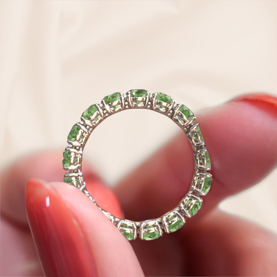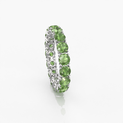 This is our Vivienne 3.7 ring. This specific type is called an eternity ring and it is set with a continuous line of identically cut gemstones. The ring is made in 14 Carat white gold and is set with small tourmaline green, 3.7 mm. The amazing tourmaline green are identical in size and are set in the ring band. Our tourmaline green are selected with great care so they are identical, which gives the best result. In order to get the best result, our artisans position all tourmaline green by hand with the utmost care. Our Goldsmiths have one ambition, which is creating the perfect ring. That is why we love what we do. In the end you get a stunning classic white gold stackable ring with a row of tourmaline green which seem to have no beginning nor end. The perfect symbol of your undying love for her! How special is that!After receiving your order, our goldsmiths will start the creative process of making your Vivienne 3.7 ring. We don't keep stock. This is advantageous because these costs will not be passed on to you. Therefore, we can offer jewellery at exceptionally low prices.New jewellery designs are added to our online collection daily. Our team of passionate designers strive to create extraordinary and diverse designs. Have you seen a ring you like? Please feel free to contact us. Based on a good price/ quality ratio, we will make you an offer you can't refuse!To make it easier for you, we offer a 30 day return policy. Check our terms and conditions.