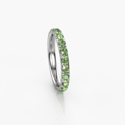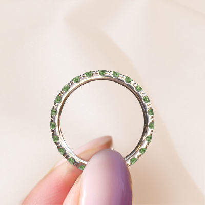This is our Jackie 2.5 ring. This specific type is called an eternity ring and it is set with a continuous line of identically cut gemstones. The ring is made in platinum and is set with small tourmaline green, 2.5 mm. This platinum Eternity ring is a perfectly beautiful and meaningful way to give your proposal that special touch. The magnificent evenly shaped tourmaline green are pave set around the ring. The identical tourmaline green are carefully selected to give the ring a maximum effect. Do keep in mind we use natural resources so small differences between stones are common. The special effect is enhanced due to precise positioning of the tourmaline green. This requires the utmost precision and a skilful hand but for our skilled artisans this is what excites them. The result is a ring with a row of tourmaline green which seem to have no beginning nor end. The perfect symbol of your love for her! Isn't she a beauty?After receiving your order, our goldsmiths will start the creative process of making your Jackie 2.5 ring. We don't keep stock. This is advantageous because these costs will not be passed on to you. Therefore, we can offer jewellery at exceptionally low prices.New jewellery designs are added to our online collection daily. Our team of passionate designers strive to create extraordinary and diverse designs. Have you seen a ring you like? Please feel free to contact us. Based on a good price/ quality ratio, we will make you an offer you can't refuse!To make it easier for you, we offer a 30 day return policy. Check our terms and conditions.
