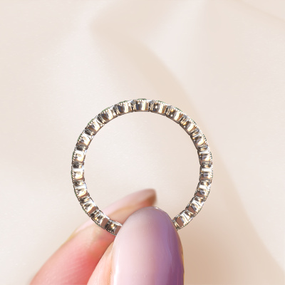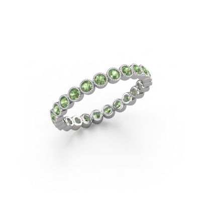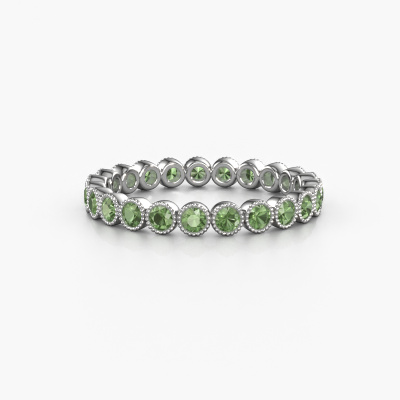 This is our Mariam 0.03 ring. This specific type is called an eternity ring and it is set with a continuous line of identically cut gemstones. The ring is made in platinum and is set with small tourmaline green, 2 mm. This platinum Eternity ring is a perfectly beautiful and meaningful way to give your proposal that special touch. The magnificent evenly shaped tourmaline green are pave set around the ring. The identical tourmaline green are carefully selected to give the ring a maximum effect. Do keep in mind we use natural resources so small differences between stones are common. The special effect is enhanced due to precise positioning of the tourmaline green. This requires the utmost precision and a skilful hand but for our skilled artisans this is what excites them. The result is a ring with a row of tourmaline green which seem to have no beginning nor end. The perfect symbol of your love for her! Isn't she a beauty?Because we design and deliver our own rings, we can offer you a ring at a price you won't find anywhere else. A ring is made to order, which helps prevent excess supplies, so we can make you a great price offer. We understand it feels risky, buying your ring online, but we will gladly assist in the designing process, taking your budget into consideration.Our team of talented, passionate designers add new ring designs to our online collection daily. Our objective in doing so, is to be able to offer you a wide variety of jewels. Please feel free to request a quote if you have specific wishes for your ring. We guarantee to make you an offer you can't refuse.To make it easier for you, we offer a 30 day return policy. Check our terms and conditions.