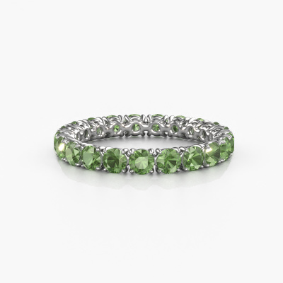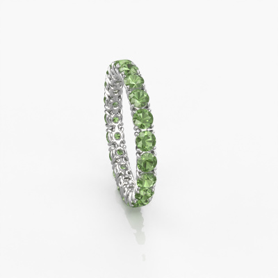 This is our Vivienne 2.9 ring. This specific type is called an eternity ring and it is set with a continuous line of identically cut gemstones. The ring is made in 14 Carat white gold and is set with small tourmaline green, 2.9 mm. This white gold Eternity ring is a perfectly beautiful and meaningful way to give your proposal that special touch. The magnificent evenly shaped tourmaline green are pave set around the ring. The identical tourmaline green are carefully selected to give the ring a maximum effect. Do keep in mind we use natural resources so small differences between stones are common. The special effect is enhanced due to precise positioning of the tourmaline green. This requires the utmost precision and a skilful hand but for our skilled artisans this is what excites them. The result is a ring with a row of tourmaline green which seem to have no beginning nor end. The perfect symbol of your love for her! Isn't she a beauty?By using our modern techniques, we can design and customize the finest quality jewels with the utmost care for you. Our rings are always priced 30 percent lower than other jewellers. We make rings to order, so we don't have to maintain a large stock. If you have a certain budget, we are more than happy to advice you accordingly.New jewellery designs are added to our online collection daily. Our team of passionate designers strive to create extraordinary and diverse designs. Have you seen a ring you like? Please feel free to contact us. Based on a good price/ quality ratio, we will make you an offer you can't refuse!To make it easier for you, we offer a 30 day return policy. Check our terms and conditions.