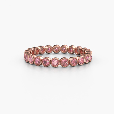 This is our Mariam 0.03 ring. This specific type is called an eternity ring and it is set with a continuous line of identically cut gemstones. The ring is made in 14 Carat rose gold and is set with small tourmaline pink, 2 mm. This rose gold Eternity ring is a perfectly beautiful and meaningful way to give your proposal that special touch. The magnificent evenly shaped tourmaline pink are pave set around the ring. The identical tourmaline pink are carefully selected to give the ring a maximum effect. Do keep in mind we use natural resources so small differences between stones are common. The special effect is enhanced due to precise positioning of the tourmaline pink. This requires the utmost precision and a skilful hand but for our skilled artisans this is what excites them. The result is a ring with a row of tourmaline pink which seem to have no beginning nor end. The perfect symbol of your love for her! Isn't she a beauty?Because we design and deliver our own rings, we can offer you a ring at a price you won't find anywhere else. A ring is made to order, which helps prevent excess supplies, so we can make you a great price offer. We understand it feels risky, buying your ring online, but we will gladly assist in the designing process, taking your budget into consideration.Our team of talented, passionate designers add new ring designs to our online collection daily. Our objective in doing so, is to be able to offer you a wide variety of jewels. Please feel free to request a quote if you have specific wishes for your ring. We guarantee to make you an offer you can't refuse.To make it easier for you, we offer a 30 day return policy. Check our terms and conditions.