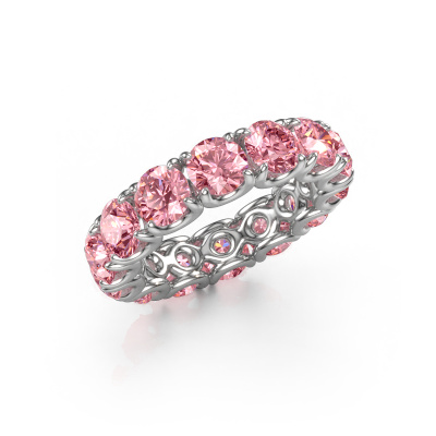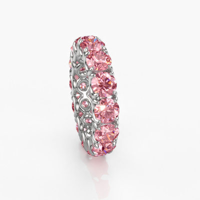 This is our Estee 5.0 ring. This specific type is called an eternity ring and it is set with a continuous line of identically cut gemstones. The ring is made in 14 Carat white gold and is set with small pink lab grown diamonds, 5 mm. The amazing pink lab grown diamonds are identical in size and are set in the ring band. Our pink lab grown diamonds are selected with great care so they are identical, which gives the best result. In order to get the best result, our artisans position all pink lab grown diamonds by hand with the utmost care. Our Goldsmiths have one ambition, which is creating the perfect ring. That is why we love what we do. In the end you get a stunning exclusive white gold ring with a row of pink lab grown diamonds which seem to have no beginning nor end. The perfect symbol of your undying love for her! How special is that!Are you on a budget? Please feel free to contact us, so we can go discuss your options. We offer our rings at guaranteed best price, because we make them to order. You won't find such a price anywhere else!Our talented designers add new designs to our online collection daily. Together they create a diverse collection of the finest jewellery. If you prefer to make a ring according your own design, please feel free to request a quote. We will make you an amazing offer, based on quality and price.To make it easier for you, we offer a 30 day return policy. Check our terms and conditions.