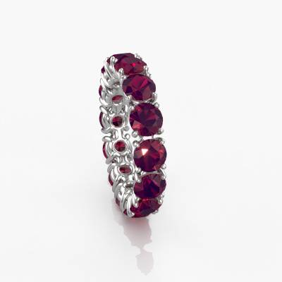 This is our Vivienne 4.7 ring. This specific type is called an eternity ring and it is set with a continuous line of identically cut gemstones. The ring is made in 14 Carat white gold and is set with small rhodolite, 4.7 mm. The amazing rhodolite are identical in size and are set in the ring band. Our rhodolite are selected with great care so they are identical, which gives the best result. In order to get the best result, our artisans position all rhodolite by hand with the utmost care. Our Goldsmiths have one ambition, which is creating the perfect ring. That is why we love what we do. In the end you get a stunning exclusive white gold ring with a row of rhodolite which seem to have no beginning nor end. The perfect symbol of your undying love for her! How special is that!After receiving your order, our goldsmiths will passionately start the creative process of making your ring in our own studio. Because we don't have a big stockpile, these costs will not be passed on to you. Our pricing is proof of that! We offer top quality jewels at lowest price, guaranteed.Our talented designers add new designs to our online collection daily. Together they create a diverse collection of the finest jewellery. If you prefer to make a ring according your own design, please feel free to request a quote. We will make you an amazing offer, based on quality and price.To make it easier for you, we offer a 30 day return policy. Check our terms and conditions.