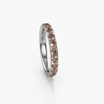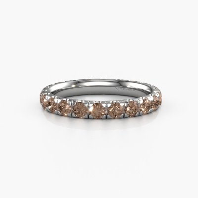 This is our Jackie 2.7 ring. This specific type is called an eternity ring and it is set with a continuous line of identically cut gemstones. The ring is made in 14 Carat white gold and is set with small brown diamonds, 1.76 crt. The amazing brown diamonds are identical in size and are set in the ring band. Our brown diamonds are selected with great care so they are identical, which gives the best result. In order to get the best result, our artisans position all brown diamonds by hand with the utmost care. Our Goldsmiths have one ambition, which is creating the perfect ring. That is why we love what we do. In the end you get a stunning modern white gold stackable ring with a row of brown diamonds which seem to have no beginning nor end. The perfect symbol of your undying love for her! How special is that!Because we design and deliver our own rings, we can offer you a ring at a price you won't find anywhere else. A ring is made to order, which helps prevent excess supplies, so we can make you a great price offer. We understand it feels risky, buying your ring online, but we will gladly assist in the designing process, taking your budget into consideration.Our team of talented, passionate designers add new ring designs to our online collection daily. Our objective in doing so, is to be able to offer you a wide variety of jewels. Please feel free to request a quote if you have specific wishes for your ring. We guarantee to make you an offer you can't refuse.To make it easier for you, we offer a 30 day return policy. Check our terms and conditions.