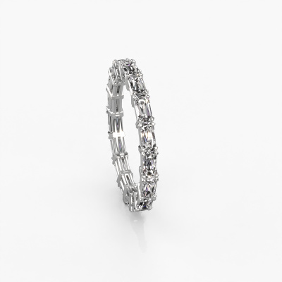 This is our Vivienne EME 4x2 ring. This specific type is called an eternity ring and it is set with a continuous line of identically cut gemstones. The ring is made in 14 Carat white gold and is set with small diamonds, 2.55 crt. The amazing diamonds are identical in size and are set in the ring band. Our diamonds are selected with great care so they are identical, which gives the best result. In order to get the best result, our artisans position all diamonds by hand with the utmost care. Our Goldsmiths have one ambition, which is creating the perfect ring. That is why we love what we do. In the end you get a stunning modern white gold stackable ring with a row of diamonds which seem to have no beginning nor end. The perfect symbol of your undying love for her! How special is that!By using our modern techniques, we can design and customize the finest quality jewels with the utmost care for you. Our rings are always priced 30 percent lower than other jewellers. We make rings to order, so we don't have to maintain a large stock. If you have a certain budget, we are more than happy to advice you accordingly.New jewellery designs are added to our online collection daily. Our team of passionate designers strive to create extraordinary and diverse designs. Have you seen a ring you like? Please feel free to contact us. Based on a good price/ quality ratio, we will make you an offer you can't refuse!To make it easier for you, we offer a 30 day return policy. Check our terms and conditions.