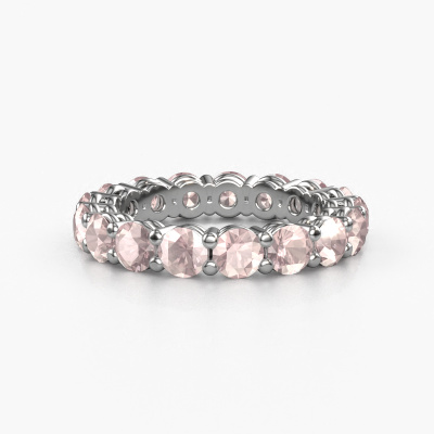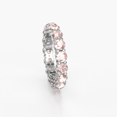 This is our Michelle full 3.7 ring. This specific type is called an eternity ring and it is set with a continuous line of identically cut gemstones. The ring is made in 14 Carat white gold and is set with small morganite champagne, 3.7 mm. The amazing morganite champagne are identical in size and are set in the ring band. Our morganite champagne are selected with great care so they are identical, which gives the best result. In order to get the best result, our artisans position all morganite champagne by hand with the utmost care. Our Goldsmiths have one ambition, which is creating the perfect ring. That is why we love what we do. In the end you get a stunning chic white gold stackable ring with a row of morganite champagne which seem to have no beginning nor end. The perfect symbol of your undying love for her! How special is that!