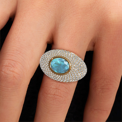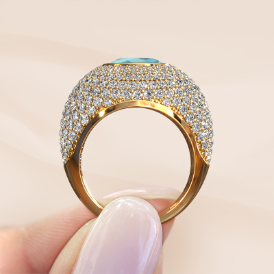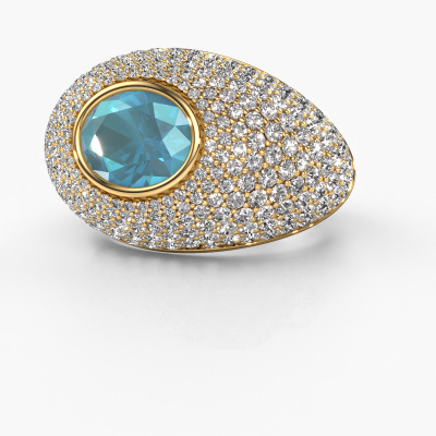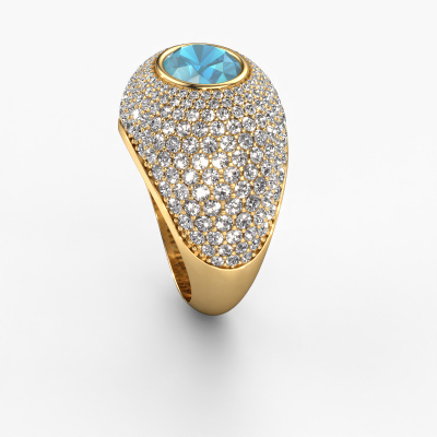 Are you looking for a pavé set ring with an eye-catching single gemstone? How do you like this Armida ring? This gold Armida ring is set with a beautiful 9x7 mm oval blue topaz. The blue topaz is carefully selected by our blue topaz suppliers. Subsequently, these gemstones are then set by our goldsmith according to ancient tradition. The ring will then be polished to perfection creating a unique ring with a stunning blue topaz. Created especially for you. How do you like this exclusive gold ring? Simply customize this Armida ring, using our online tool. Subsequently, your personal pavé set Armida ring will be made by hand by our goldsmiths. Precious metals and gemstones can be customized to your liking. Do you have specific preferences which are unavailable in our online tool? Please feel free to contact us. We will customize your personal exclusive ring to your liking.Because we design and deliver our own rings, we can offer you a ring at a price you won't find anywhere else. A ring is made to order, which helps prevent excess supplies, so we can make you a great price offer. We understand it feels risky, buying your ring online, but we will gladly assist in the designing process, taking your budget into consideration.To make it easier for you, we offer a 30 day return policy. Check our terms and conditions.