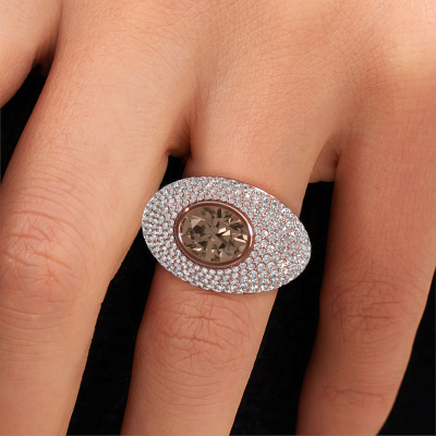 Are you looking for a pavé set ring with an eye-catching single gemstone? How do you like this Armida ring? This rose gold Armida ring is set with a beautiful 1.80 crt oval brown diamond. The brown diamond is carefully selected by our brown diamonds suppliers. Subsequently, these gemstones are then set by our goldsmith according to ancient tradition. The ring will then be polished to perfection creating a unique ring with a stunning brown diamond. Created especially for you. How do you like this exclusive rose gold ring? Simply customize this Armida ring, using our online tool. Subsequently, your personal pavé set Armida ring will be made by hand by our goldsmiths. Precious metals and gemstones can be customized to your liking. Do you have specific preferences which are unavailable in our online tool? Please feel free to contact us. We will customize your personal exclusive ring to your liking.Because we design and deliver our own rings, we can offer you a ring at a price you won't find anywhere else. A ring is made to order, which helps prevent excess supplies, so we can make you a great price offer. We understand it feels risky, buying your ring online, but we will gladly assist in the designing process, taking your budget into consideration.To make it easier for you, we offer a 30 day return policy. Check our terms and conditions.