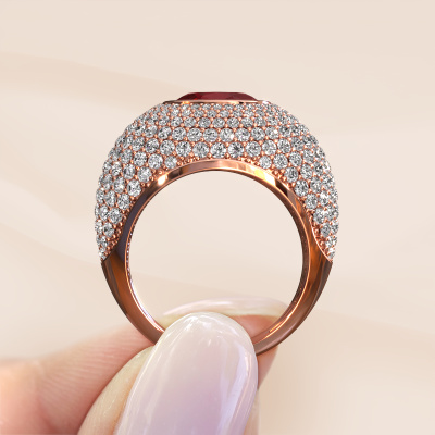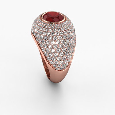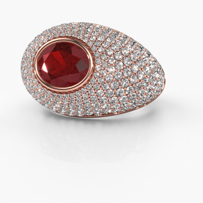 Are you looking for a pavé set ring with an eye-catching single gemstone? How do you like this Armida ring? This rose gold Armida ring is set with a beautiful 9x7 mm oval ruby. The ruby is carefully selected by our ruby suppliers. Subsequently, these gemstones are then set by our goldsmith according to ancient tradition. The ring will then be polished to perfection creating a unique ring with a stunning ruby. Created especially for you. How do you like this exclusive rose gold ring? Simply customize this Armida ring, using our online tool. Subsequently, your personal pavé set Armida ring will be made by hand by our goldsmiths. Precious metals and gemstones can be customized to your liking. Do you have specific preferences which are unavailable in our online tool? Please feel free to contact us. We will customize your personal exclusive ring to your liking.Because we design and deliver our own rings, we can offer you a ring at a price you won't find anywhere else. A ring is made to order, which helps prevent excess supplies, so we can make you a great price offer. We understand it feels risky, buying your ring online, but we will gladly assist in the designing process, taking your budget into consideration.To make it easier for you, we offer a 30 day return policy. Check our terms and conditions.