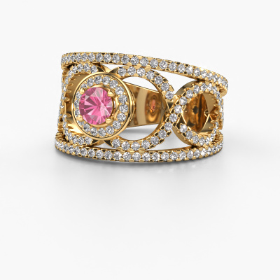 This exclusive gold Regina ring is a true work of art! This ring is made of 14 Carat gold and is set with 4.2 mm round pink sapphire. The smallest ornaments are crafted by our goldsmith with a lot of patience and great passion. In order to create this ring with great precision, this craft requires a keen eye and a skilful hand. A challenge which ignites a fire in our expert goldsmiths. The exquisite pink sapphire are set in a way that their unique qualities are strengthened. This gives the ring an even more glamorous appearance. The ring is unique by itself though, because of the natural birthstones we selected especially for this Regina ring. And by choosing the precious metal yourself, you create a unique ring. How do you like this exclusive gold ring? Simply customize this Regina ring, using our online tool. Subsequently, your personal special Regina ring will be made by hand by our goldsmiths. Precious metals and gemstones can be customized to your liking. Do you have specific preferences which are unavailable in our online tool? Please feel free to contact us. We will customize your personal exclusive ring to your liking.By using our modern techniques, we can design and customize the finest quality jewels with the utmost care for you. Our rings are always priced 30 percent lower than other jewellers. We make rings to order, so we don't have to maintain a large stock. If you have a certain budget, we are more than happy to advice you accordingly.To make it easier for you, we offer a 30 day return policy. Check our terms and conditions.