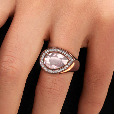 Are you looking for a special ring with an eye-catching single gemstone? How do you like this Latashia ring? This rose gold Latashia ring is set with a beautiful 12x8 mm pear morganite champagne. The morganite champagne is carefully selected by our morganite champagne suppliers. Subsequently, these gemstones are then set by our goldsmith according to ancient tradition. The ring will then be polished to perfection creating a unique ring with a stunning morganite champagne. Created especially for you. Customize your own specialLatashia ring, which will then be created by our goldsmiths with great passion. Do you prefer a different option than is shown here in the rose gold Latashia ring? Then our online tools offers various options. Feel free to ask us for help if you are unable to succeed. We are happy to answer your questions!By using a combination of the latest modern techniques, combined with ancient crafting, we can make all our rings in our own studio. Each jewel is made to order. This is advantageous because we can offer you a price you won't find anywhere else.To make it easier for you, we offer a 30 day return policy. Check our terms and conditions.