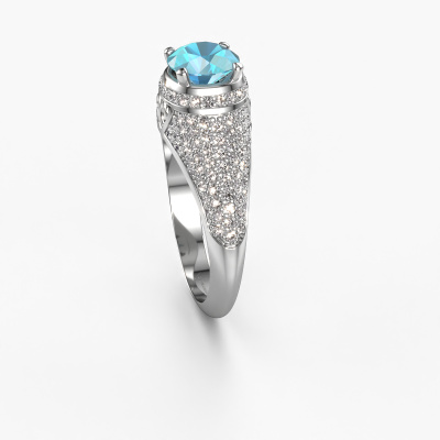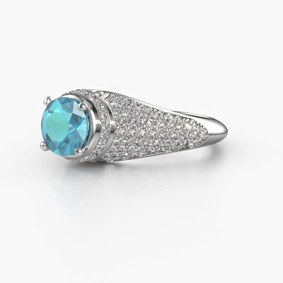 This exclusive platinum Sharee ring is a true work of art! This ring is made of platinum and is set with 6.5 mm round blue topaz. The smallest ornaments are crafted by our goldsmith with a lot of patience and great passion. In order to create this ring with great precision, this craft requires a keen eye and a skilful hand. A challenge which ignites a fire in our expert goldsmiths. The exquisite blue topaz are set in a way that their unique qualities are strengthened. This gives the ring an even more glamorous appearance. The ring is unique by itself though, because of the natural birthstones we selected especially for this Sharee ring. And by choosing the precious metal yourself, you create a unique ring. The special sharee ring, as shown here, can be customized to your liking. Our online tool offers many different options but please feel free to contact us if you want changes made to your sharee ring, which are unavailable in our online tool.Because we design and deliver our own rings, we can offer you a ring at a price you won't find anywhere else. A ring is made to order, which helps prevent excess supplies, so we can make you a great price offer. We understand it feels risky, buying your ring online, but we will gladly assist in the designing process, taking your budget into consideration.To make it easier for you, we offer a 30 day return policy. Check our terms and conditions.