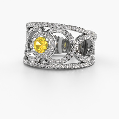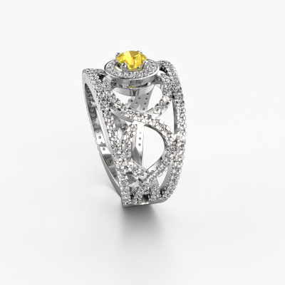 This exclusive platinum Regina ring is a true work of art! This ring is made of platinum and is set with 4.2 mm round yellow sapphire. The smallest ornaments are crafted by our goldsmith with a lot of patience and great passion. In order to create this ring with great precision, this craft requires a keen eye and a skilful hand. A challenge which ignites a fire in our expert goldsmiths. The exquisite yellow sapphire are set in a way that their unique qualities are strengthened. This gives the ring an even more glamorous appearance. The ring is unique by itself though, because of the natural birthstones we selected especially for this Regina ring. And by choosing the precious metal yourself, you create a unique ring. How do you like this exclusive platinum ring? Simply customize this Regina ring, using our online tool. Subsequently, your personal special Regina ring will be made by hand by our goldsmiths. Precious metals and gemstones can be customized to your liking. Do you have specific preferences which are unavailable in our online tool? Please feel free to contact us. We will customize your personal exclusive ring to your liking.By using our modern techniques, we can design and customize the finest quality jewels with the utmost care for you. Our rings are always priced 30 percent lower than other jewellers. We make rings to order, so we don't have to maintain a large stock. If you have a certain budget, we are more than happy to advice you accordingly.To make it easier for you, we offer a 30 day return policy. Check our terms and conditions.