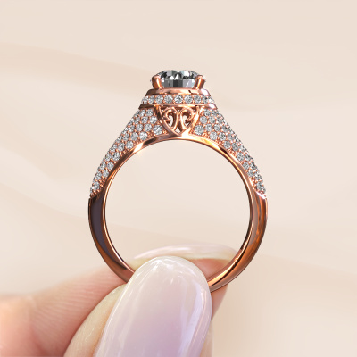 This exclusive rose gold Sharee ring is a true work of art! This ring is made of 14 Carat rose gold and is set with 6.5 mm round zirconia. The smallest ornaments are crafted by our goldsmith with a lot of patience and great passion. In order to create this ring with great precision, this craft requires a keen eye and a skilful hand. A challenge which ignites a fire in our expert goldsmiths. The exquisite cz-stones are set in a way that their unique qualities are strengthened. This gives the ring an even more glamorous appearance. The ring is unique by itself though, because of the natural birthstones we selected especially for this Sharee ring. And by choosing the precious metal yourself, you create a unique ring. The special sharee ring, as shown here, can be customized to your liking. Our online tool offers many different options but please feel free to contact us if you want changes made to your sharee ring, which are unavailable in our online tool.Because we design and deliver our own rings, we can offer you a ring at a price you won't find anywhere else. A ring is made to order, which helps prevent excess supplies, so we can make you a great price offer. We understand it feels risky, buying your ring online, but we will gladly assist in the designing process, taking your budget into consideration.To make it easier for you, we offer a 30 day return policy. Check our terms and conditions.