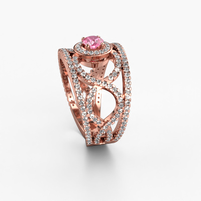 This exclusive rose gold Regina ring is a true work of art! This ring is made of 14 Carat rose gold and is set with 4.2 mm round pink sapphire. The smallest ornaments are crafted by our goldsmith with a lot of patience and great passion. In order to create this ring with great precision, this craft requires a keen eye and a skilful hand. A challenge which ignites a fire in our expert goldsmiths. The exquisite pink sapphire are set in a way that their unique qualities are strengthened. This gives the ring an even more glamorous appearance. The ring is unique by itself though, because of the natural birthstones we selected especially for this Regina ring. And by choosing the precious metal yourself, you create a unique ring. How do you like this exclusive rose gold ring? Simply customize this Regina ring, using our online tool. Subsequently, your personal special Regina ring will be made by hand by our goldsmiths. Precious metals and gemstones can be customized to your liking. Do you have specific preferences which are unavailable in our online tool? Please feel free to contact us. We will customize your personal exclusive ring to your liking.By using our modern techniques, we can design and customize the finest quality jewels with the utmost care for you. Our rings are always priced 30 percent lower than other jewellers. We make rings to order, so we don't have to maintain a large stock. If you have a certain budget, we are more than happy to advice you accordingly.To make it easier for you, we offer a 30 day return policy. Check our terms and conditions.