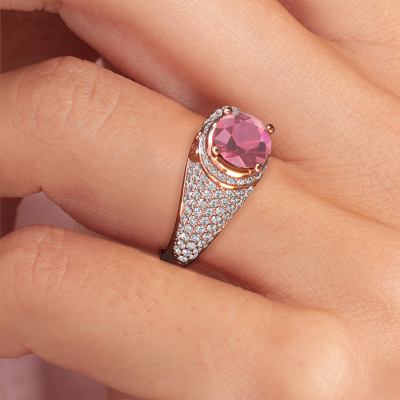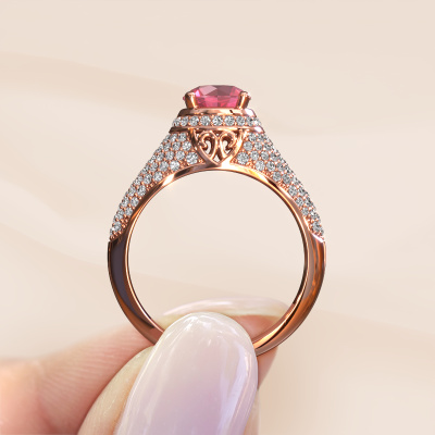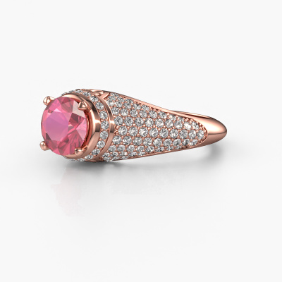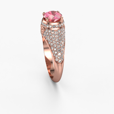 This exclusive rose gold Sharee ring is a true work of art! This ring is made of 14 Carat rose gold and is set with 6.5 mm round tourmaline pink. The smallest ornaments are crafted by our goldsmith with a lot of patience and great passion. In order to create this ring with great precision, this craft requires a keen eye and a skilful hand. A challenge which ignites a fire in our expert goldsmiths. The exquisite tourmaline pink are set in a way that their unique qualities are strengthened. This gives the ring an even more glamorous appearance. The ring is unique by itself though, because of the natural birthstones we selected especially for this Sharee ring. And by choosing the precious metal yourself, you create a unique ring. The special sharee ring, as shown here, can be customized to your liking. Our online tool offers many different options but please feel free to contact us if you want changes made to your sharee ring, which are unavailable in our online tool.Because we design and deliver our own rings, we can offer you a ring at a price you won't find anywhere else. A ring is made to order, which helps prevent excess supplies, so we can make you a great price offer. We understand it feels risky, buying your ring online, but we will gladly assist in the designing process, taking your budget into consideration.To make it easier for you, we offer a 30 day return policy. Check our terms and conditions.