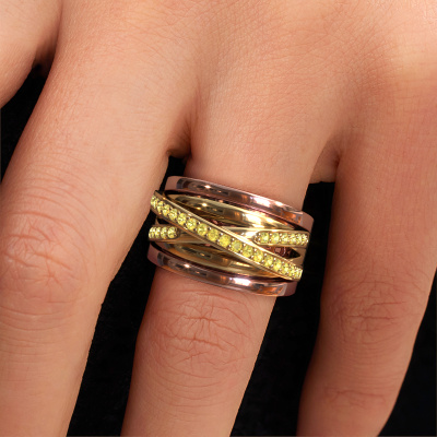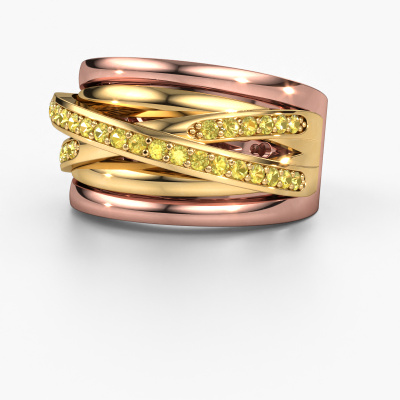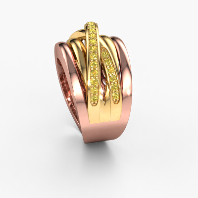 How would you describe your own style? Are you looking for something uniquely different? This split band rose gold Clair 3 ring is astonishing! Simply customize to your or her own liking. This ring is set with yellow sapphire. These yellow sapphire have been carefully selected because your ring must be adorned with nothing but the most beautiful gemstone. Wouldn't you agree? Our expert goldsmith will create your ring in our own crafting studios, where the yellow sapphire will be set with care. The ring will then be polished to perfection to give it that extra sparkle. It's a perfect ring for a woman of excellent taste!The best part of this split band ring is that you can customize it to your own liking. Your style, your choice, your ring. On top of that, your exclusive rose gold ring will be made by hand with eco-friendly materials! Please feel free to easily customize the ring, using our online tool.By using our modern techniques, we can design and customize the finest quality jewels with the utmost care for you. Our rings are always priced 30 percent lower than other jewellers. We make rings to order, so we don't have to maintain a large stock. If you have a certain budget, we are more than happy to advice you accordingly.To make it easier for you, we offer a 30 day return policy. Check our terms and conditions.
