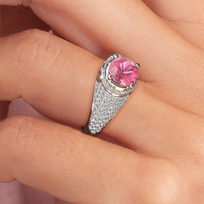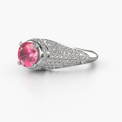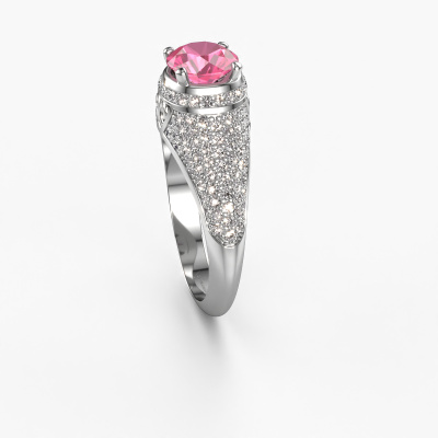 This exclusive white gold Sharee ring is a true work of art! This ring is made of 14 Carat white gold and is set with 6.5 mm round pink sapphire. The smallest ornaments are crafted by our goldsmith with a lot of patience and great passion. In order to create this ring with great precision, this craft requires a keen eye and a skilful hand. A challenge which ignites a fire in our expert goldsmiths. The exquisite pink sapphire are set in a way that their unique qualities are strengthened. This gives the ring an even more glamorous appearance. The ring is unique by itself though, because of the natural birthstones we selected especially for this Sharee ring. And by choosing the precious metal yourself, you create a unique ring. The special sharee ring, as shown here, can be customized to your liking. Our online tool offers many different options but please feel free to contact us if you want changes made to your sharee ring, which are unavailable in our online tool.Because we design and deliver our own rings, we can offer you a ring at a price you won't find anywhere else. A ring is made to order, which helps prevent excess supplies, so we can make you a great price offer. We understand it feels risky, buying your ring online, but we will gladly assist in the designing process, taking your budget into consideration.To make it easier for you, we offer a 30 day return policy. Check our terms and conditions.