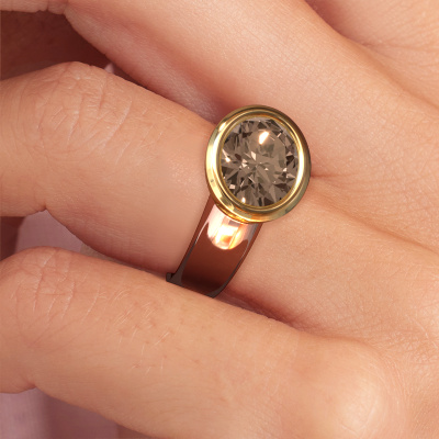 Are you looking for a tasteful ring with an eye-catching single gemstone? How do you like this Evelyne ring? This rose gold Evelyne ring is set with a beautiful 2.70 crt oval brown diamond. The brown diamond is carefully selected by our brown diamonds suppliers. Subsequently, these gemstones are then set by our goldsmith according to ancient tradition. The ring will then be polished to perfection creating a unique ring with a stunning brown diamond. Created especially for you. A customized fantasy ring is the perfect gift! New exquisite designs are added daily by our team of passionate goldsmiths. And each design can be customized. Simply customize the precious metals and the colour of gemstones which will be used, for example. This makes your design of the fantasy Evelyne ring truly unique!By using a combination of the latest modern techniques, combined with ancient crafting, we can make all our rings in our own studio. Each jewel is made to order. This is advantageous because we can offer you a price you won't find anywhere else.To make it easier for you, we offer a 30 day return policy. Check our terms and conditions.