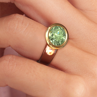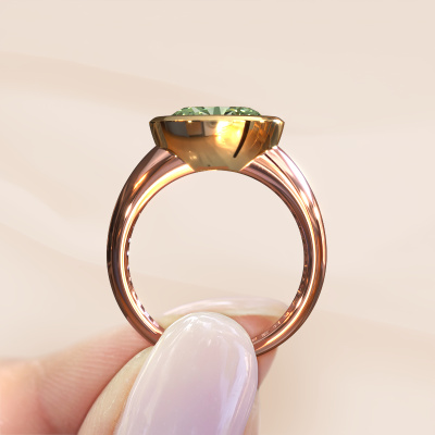 Are you looking for a tasteful ring with an eye-catching single gemstone? How do you like this Evelyne ring? This rose gold Evelyne ring is set with a beautiful 10x8 mm oval green lab grown diamond. The green lab grown diamond is carefully selected by our green lab grown diamonds suppliers. Subsequently, these gemstones are then set by our goldsmith according to ancient tradition. The ring will then be polished to perfection creating a unique ring with a stunning green lab grown diamond. Created especially for you. A customized fantasy ring is the perfect gift! New exquisite designs are added daily by our team of passionate goldsmiths. And each design can be customized. Simply customize the precious metals and the colour of gemstones which will be used, for example. This makes your design of the fantasy Evelyne ring truly unique!By using a combination of the latest modern techniques, combined with ancient crafting, we can make all our rings in our own studio. Each jewel is made to order. This is advantageous because we can offer you a price you won't find anywhere else.To make it easier for you, we offer a 30 day return policy. Check our terms and conditions.
