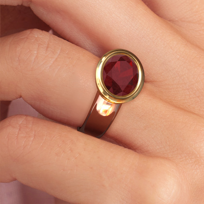 Are you looking for a tasteful ring with an eye-catching single gemstone? How do you like this Evelyne ring? This rose gold Evelyne ring is set with a beautiful 10x8 mm oval ruby. The ruby is carefully selected by our ruby suppliers. Subsequently, these gemstones are then set by our goldsmith according to ancient tradition. The ring will then be polished to perfection creating a unique ring with a stunning ruby. Created especially for you. A customized fantasy ring is the perfect gift! New exquisite designs are added daily by our team of passionate goldsmiths. And each design can be customized. Simply customize the precious metals and the colour of gemstones which will be used, for example. This makes your design of the fantasy Evelyne ring truly unique!By using a combination of the latest modern techniques, combined with ancient crafting, we can make all our rings in our own studio. Each jewel is made to order. This is advantageous because we can offer you a price you won't find anywhere else.To make it easier for you, we offer a 30 day return policy. Check our terms and conditions.