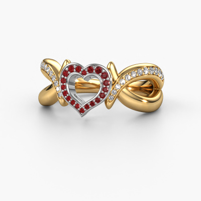 This symbolic gold Earlie 2 ring is set with ruby. For some, a ring is nothing more than a beautiful fashion item but they can become a meaningful keepsake. A ring such as this can be worn daily and it matches numerous different styles. Designing your own unique ring, makes it even more special. You are reminded of its uniqueness every time you look at it. Perhaps it reminds you of someone special. It might bring back memories. Unforgettable moments, represented in one ring. The beauty of it all is that the used precious metals and gemstones will last a lifetime. A lifetime of memories deserves nothing less! As soon as you finished designing your Earlie 2 ring with our online tool, our goldsmiths will start their creative process of making your ring. This will be done with passion and care, according ancient crafting. On top of that, our jewels are made of eco-friendly materials. Simply customize online with our online tool, if you want any changes made. If you want specific changes made to your Earlie 2 ring, that are unavailable in our online tool, please feel free to contact our expert designers.After receiving your order, our goldsmiths will passionately start the creative process of making your ring in our own studio. Because we don't have a big stockpile, these costs will not be passed on to you. Our pricing is proof of that! We offer top quality jewels at lowest price, guaranteed.To make it easier for you, we offer a 30 day return policy. Check our terms and conditions.