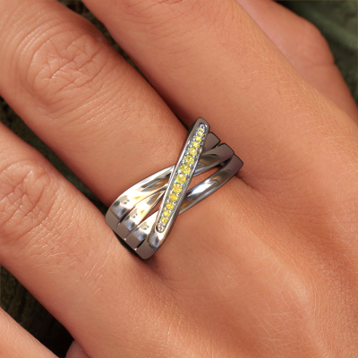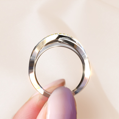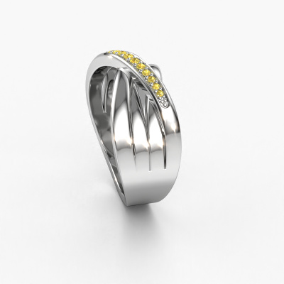 How would you describe your own style? Are you looking for something uniquely different? This split band platinum Renna 2 ring is astonishing! Simply customize to your or her own liking. This ring is set with yellow sapphire. These yellow sapphire have been carefully selected because your ring must be adorned with nothing but the most beautiful gemstone. Wouldn't you agree? Our expert goldsmith will create your ring in our own crafting studios, where the yellow sapphire will be set with care. The ring will then be polished to perfection to give it that extra sparkle. It's a perfect ring for a woman of excellent taste!Our goldsmiths passionately create your customized ring to your liking with the utmost care. The platinum ring, as shown here, can be customized using our online tool. Feel free to ask our jewel designers for assistance if you want changes made which are unavailable in our online tool. We are happy to answer your questions.Are you on a budget? Please feel free to contact us, so we can go discuss your options. We offer our rings at guaranteed best price, because we make them to order. You won't find such a price anywhere else!To make it easier for you, we offer a 30 day return policy. Check our terms and conditions.