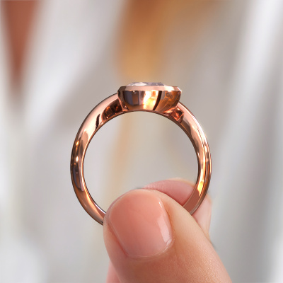 This ring called Lena is made of 14 Carat rose gold and is set with morganite champagne. Are you in the market for a unique rose gold ring with a modern twist? Then this ring might suit you. Simply customize to your or her liking. It suits the contemporary modern woman. This fantasy ring is set with beautiful morganite champagne. This has been carefully selected. Because your ring must be adorned with nothing but the most stunning gemstone. Our expert goldsmith will create your ring in our own studio, where the morganite champagne will be set with great care. The ring will then be polished to perfection to create a stunning ring. Are you on a budget? Please feel free to contact us, so we can go discuss your options. We offer our rings at guaranteed best price, because we make them to order. You won't find such a price anywhere else!New jewellery designs are added to our online collection daily. Our team of passionate designers strive to create extraordinary and diverse designs. Have you seen a ring you like? Please feel free to contact us. Based on a good price/ quality ratio, we will make you an offer you can't refuse!To make it easier for you, we offer a 30 day return policy. Check our terms and conditions.