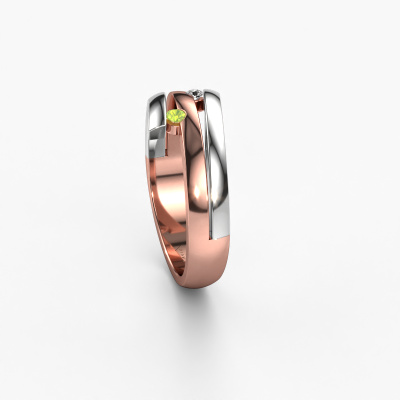 This ring called Dena is made of 14 Carat rose gold and is set with peridot. Are you in the market for a unique rose gold ring with a modern twist? Then this ring might suit you. Simply customize to your or her liking. It suits the contemporary modern woman. This fantasy ring is set with beautiful peridot. This has been carefully selected. Because your ring must be adorned with nothing but the most stunning gemstone. Our expert goldsmith will create your ring in our own studio, where the peridot will be set with great care. The ring will then be polished to perfection to create a stunning ring. After receiving your order, our goldsmiths will start the creative process of making your Dena ring. We don't keep stock. This is advantageous because these costs will not be passed on to you. Therefore, we can offer jewellery at exceptionally low prices.New jewellery designs are added to our online collection daily. Our team of passionate designers strive to create extraordinary and diverse designs. Have you seen a ring you like? Please feel free to contact us. Based on a good price/ quality ratio, we will make you an offer you can't refuse!To make it easier for you, we offer a 30 day return policy. Check our terms and conditions.