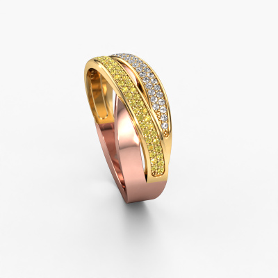 This ring called Myra is made of 14 Carat rose gold and is set with yellow sapphire. Are you in the market for a unique rose gold ring with a modern twist? Then this ring might suit you. Simply customize to your or her liking. It suits the contemporary modern woman. This fantasy ring is set with beautiful yellow sapphire. This has been carefully selected. Because your ring must be adorned with nothing but the most stunning gemstone. Our expert goldsmith will create your ring in our own studio, where the yellow sapphire will be set with great care. The ring will then be polished to perfection to create a stunning ring. After receiving your order, our goldsmiths will start the creative process of making your Myra ring. We don't keep stock. This is advantageous because these costs will not be passed on to you. Therefore, we can offer jewellery at exceptionally low prices.Our talented designers add new designs to our online collection daily. Together they create a diverse collection of the finest jewellery. If you prefer to make a ring according your own design, please feel free to request a quote. We will make you an amazing offer, based on quality and price.To make it easier for you, we offer a 30 day return policy. Check our terms and conditions.
