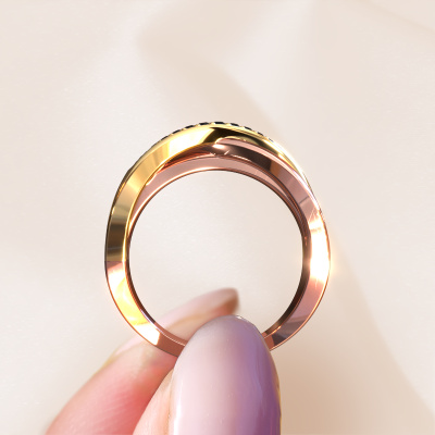 How would you describe your own style? Are you looking for something uniquely different? This split band rose gold Renna 2 ring is astonishing! Simply customize to your or her own liking. This ring is set with black diamond. These black diamonds have been carefully selected because your ring must be adorned with nothing but the most beautiful gemstone. Wouldn't you agree? Our expert goldsmith will create your ring in our own crafting studios, where the black diamond will be set with care. The ring will then be polished to perfection to give it that extra sparkle. It's a perfect ring for a woman of excellent taste!Our goldsmiths passionately create your customized ring to your liking with the utmost care. The rose gold ring, as shown here, can be customized using our online tool. Feel free to ask our jewel designers for assistance if you want changes made which are unavailable in our online tool. We are happy to answer your questions.Are you on a budget? Please feel free to contact us, so we can go discuss your options. We offer our rings at guaranteed best price, because we make them to order. You won't find such a price anywhere else!To make it easier for you, we offer a 30 day return policy. Check our terms and conditions.