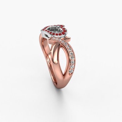 This symbolic rose gold Earlie 2 ring is set with ruby. For some, a ring is nothing more than a beautiful fashion item but they can become a meaningful keepsake. A ring such as this can be worn daily and it matches numerous different styles. Designing your own unique ring, makes it even more special. You are reminded of its uniqueness every time you look at it. Perhaps it reminds you of someone special. It might bring back memories. Unforgettable moments, represented in one ring. The beauty of it all is that the used precious metals and gemstones will last a lifetime. A lifetime of memories deserves nothing less! As soon as you finished designing your Earlie 2 ring with our online tool, our goldsmiths will start their creative process of making your ring. This will be done with passion and care, according ancient crafting. On top of that, our jewels are made of eco-friendly materials. Simply customize online with our online tool, if you want any changes made. If you want specific changes made to your Earlie 2 ring, that are unavailable in our online tool, please feel free to contact our expert designers.After receiving your order, our goldsmiths will passionately start the creative process of making your ring in our own studio. Because we don't have a big stockpile, these costs will not be passed on to you. Our pricing is proof of that! We offer top quality jewels at lowest price, guaranteed.To make it easier for you, we offer a 30 day return policy. Check our terms and conditions.