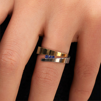 This ring called Alia is made of 14 Carat gold and is set with sapphire. Are you in the market for a unique gold ring with a modern twist? Then this ring might suit you. Simply customize to your or her liking. It suits the contemporary modern woman. This fantasy ring is set with beautiful sapphire. This has been carefully selected. Because your ring must be adorned with nothing but the most stunning gemstone. Our expert goldsmith will create your ring in our own studio, where the sapphire will be set with great care. The ring will then be polished to perfection to create a stunning ring. Because we design and deliver our own rings, we can offer you a ring at a price you won't find anywhere else. A ring is made to order, which helps prevent excess supplies, so we can make you a great price offer. We understand it feels risky, buying your ring online, but we will gladly assist in the designing process, taking your budget into consideration.Our team of talented, passionate designers add new ring designs to our online collection daily. Our objective in doing so, is to be able to offer you a wide variety of jewels. Please feel free to request a quote if you have specific wishes for your ring. We guarantee to make you an offer you can't refuse.To make it easier for you, we offer a 30 day return policy. Check our terms and conditions.