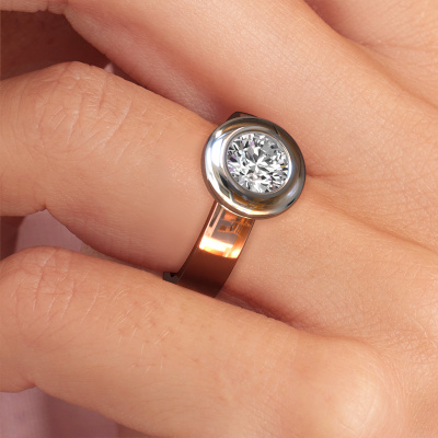This ring called Iris is made of 14 Carat rose gold and is set with diamond. Are you in the market for a unique rose gold ring with a modern twist? Then this ring might suit you. Simply customize to your or her liking. It suits the contemporary modern woman. This fashionable ring is set with beautiful diamond. This has been carefully selected. Because your ring must be adorned with nothing but the most stunning gemstone. Our expert goldsmith will create your ring in our own studio, where the diamond will be set with great care. The ring will then be polished to perfection to create a stunning ring. By using a combination of the latest modern techniques, combined with ancient crafting, we can make all our rings in our own studio. Each jewel is made to order. This is advantageous because we can offer you a price you won't find anywhere else.Our team of talented, passionate designers add new ring designs to our online collection daily. Our objective in doing so, is to be able to offer you a wide variety of jewels. Please feel free to request a quote if you have specific wishes for your ring. We guarantee to make you an offer you can't refuse.To make it easier for you, we offer a 30 day return policy. Check our terms and conditions.