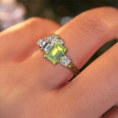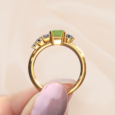 How would you describe your own style? Are you looking for something uniquely different? This fashionable gold Sabina ring is astonishing! Simply customize to your or her own liking. This ring is set with peridot. These peridot have been carefully selected because your ring must be adorned with nothing but the most beautiful gemstone. Wouldn't you agree? Our expert goldsmith will create your ring in our own crafting studios, where the peridot will be set with care. The ring will then be polished to perfection to give it that extra sparkle. It's a perfect ring for a woman of excellent taste!Customize your own fashionableSabina ring, which will then be created by our goldsmiths with great passion. Do you prefer a different option than is shown here in the gold Sabina ring? Then our online tools offers various options. Feel free to ask us for help if you are unable to succeed. We are happy to answer your questions!Because we design and deliver our own rings, we can offer you a ring at a price you won't find anywhere else. A ring is made to order, which helps prevent excess supplies, so we can make you a great price offer. We understand it feels risky, buying your ring online, but we will gladly assist in the designing process, taking your budget into consideration.To make it easier for you, we offer a 30 day return policy. Check our terms and conditions.